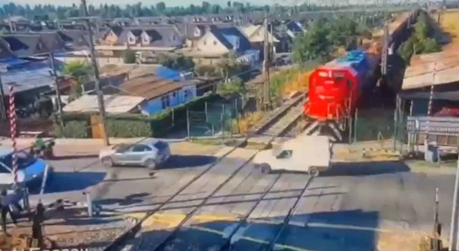 [VIDEO] Tren de carga impactó a vehículo en Rengo: Ocupantes resultaron lesionados