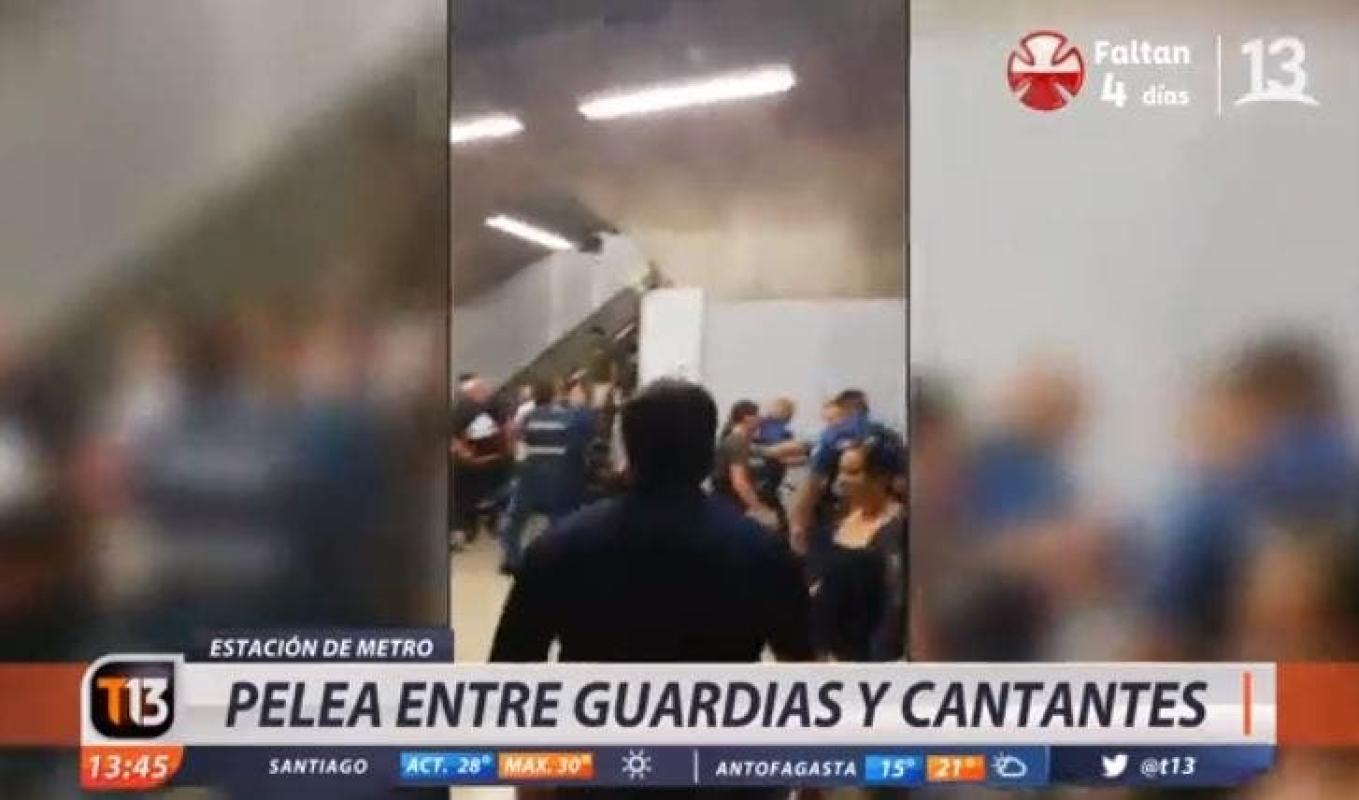En una verdadera batalla se vivió la tarde de este domingo en la estación Vicente Valdés de la Línea 5 del Metro de Santiago luego que un grupo de guardias intentara sacar de la red del tren subterráneo a un grupo de músicos que fueron defendidos por algunos pasajeros, dando pie a una gran pelea en el andén.