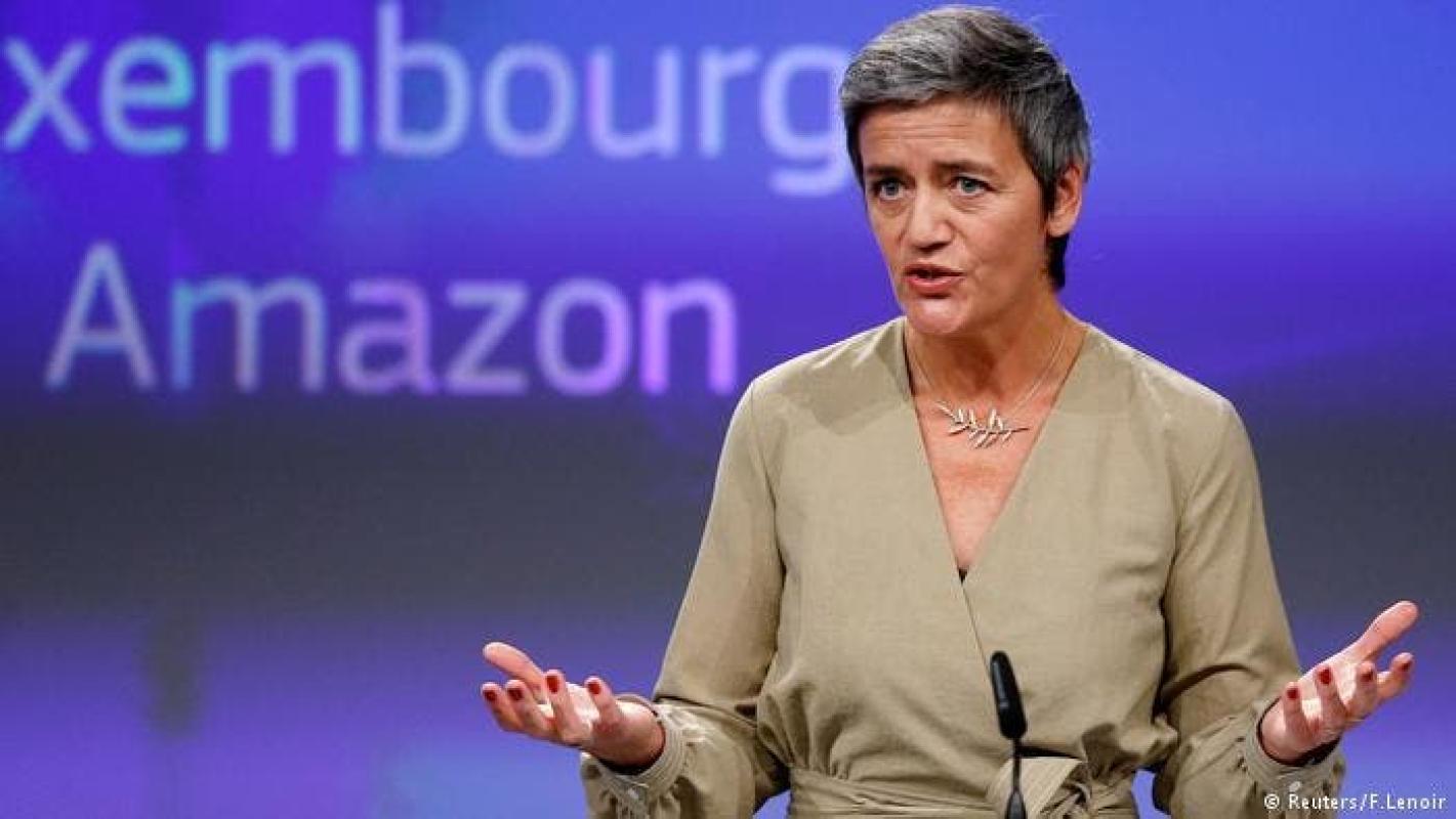 "Amazon no pagó impuestos por casi tres cuartas partes de sus beneficios", dijo Vestager.