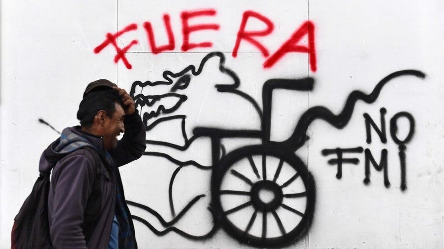 Esa postura estuvo presente en las manifestaciones en las que se exigía la "salida" del organismo internacional del país en pancartas y en grafitis que rememoran crisis anteriores, como la vivida en Venezuela en 1989, en Argentina en 2001 o, más recientemente, en Nicaragua en 2018.