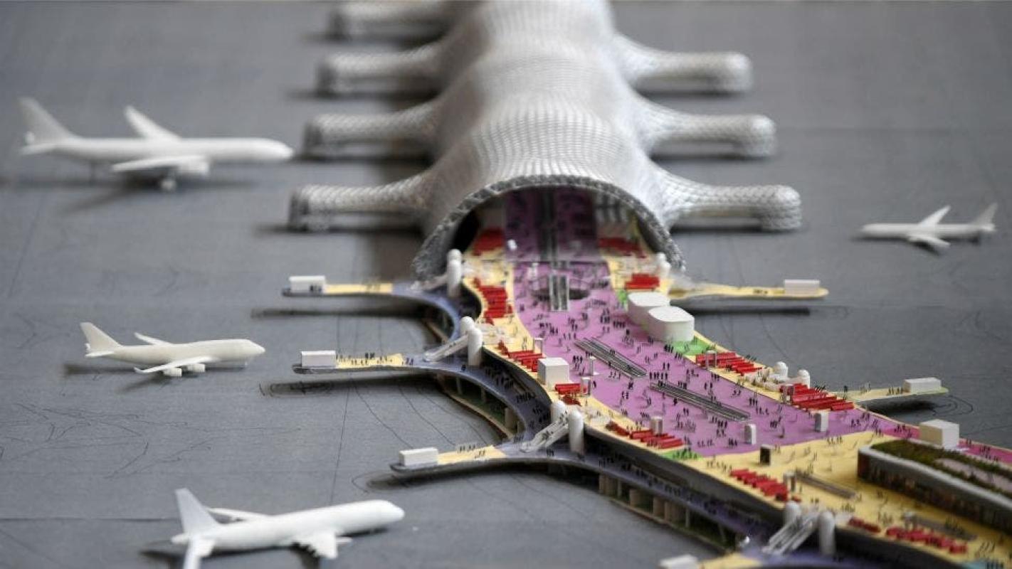 El proyecto contempla seis pistas en su etapa final, un edificio terminal con cuatro pisos de 1,5 kilómetros de extensión y 800 hectáreas de áreas verdes.