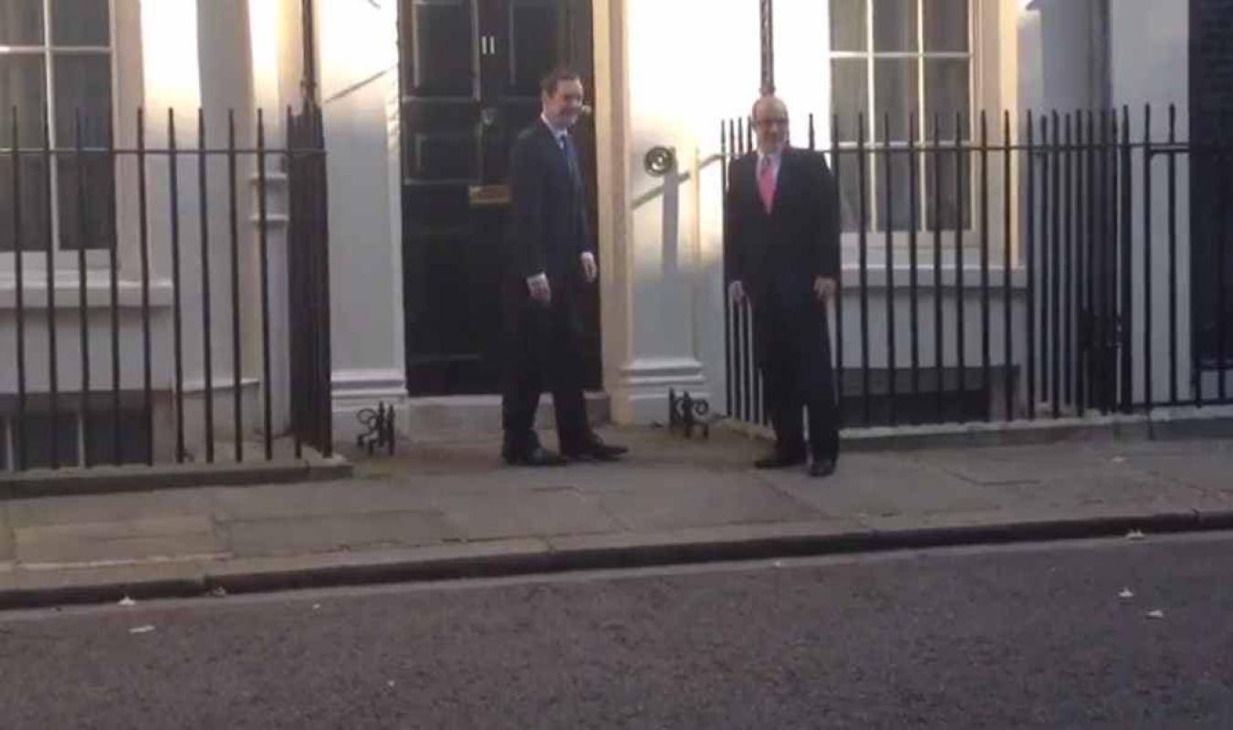 La cita se realizó en el famoso edificio 11 de Downing Street, lugar de residencia del ministro Osborne en el barrio de Whitehall.