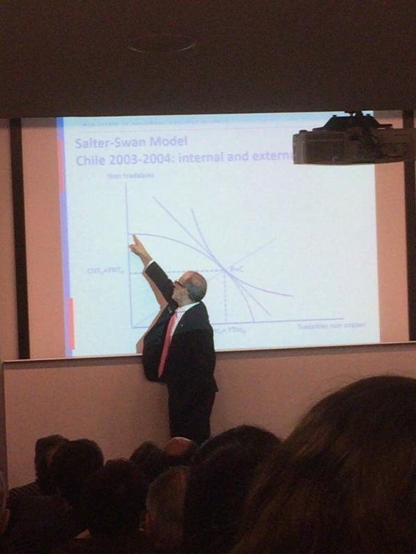 “La economía chilena: navegando en un mundo volátil”, fue el nombre de su presentación, donde repasó el panorama económico del país. No sólo eso. Valdés también narró la historia de un “país que se hace rico, pero su riqueza es temporal”.