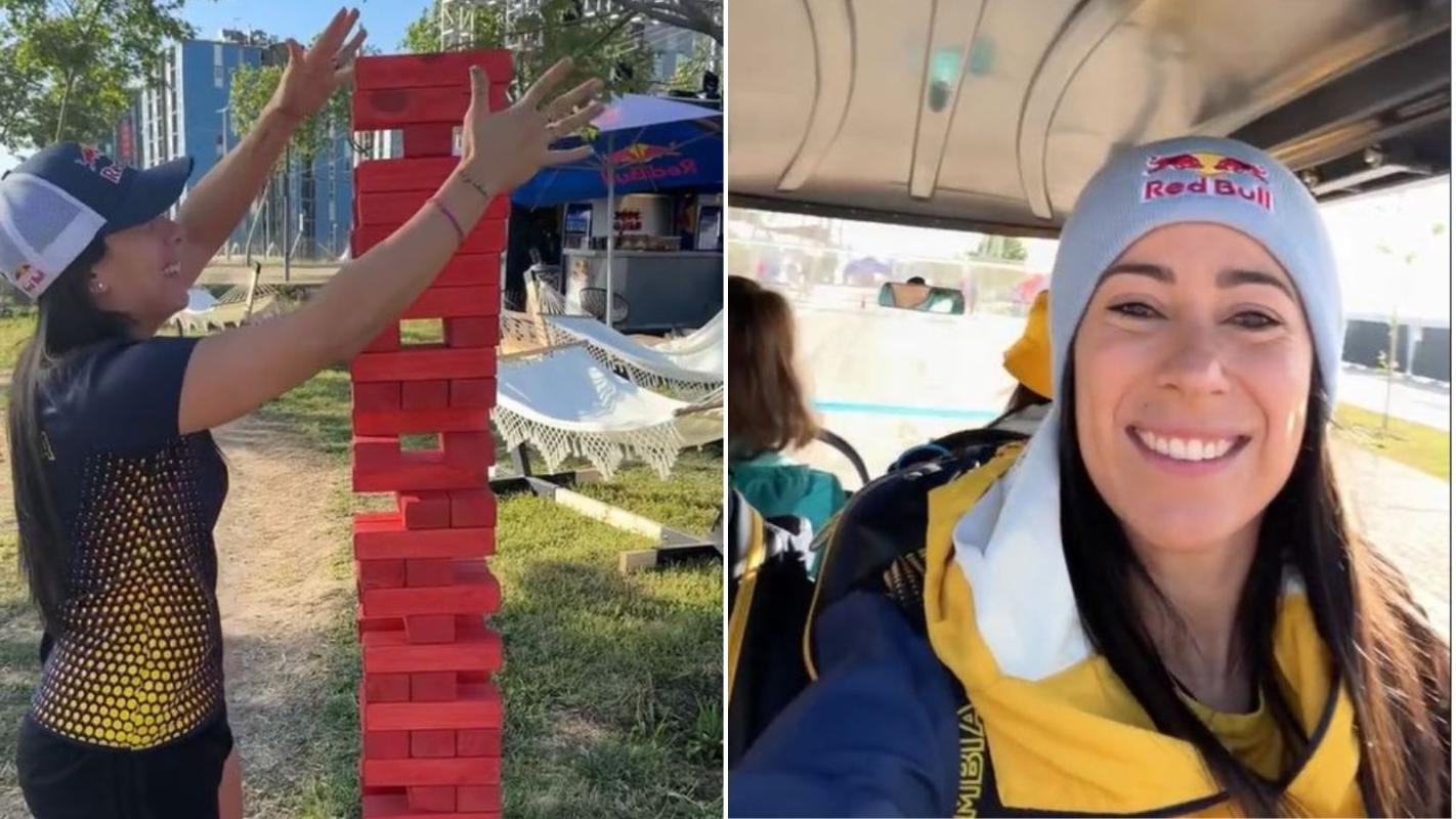 "Nos desconectábamos un poco y era genial", comentó la atleta colombiana, tras grabar un "Jenga" gigante y una máquina arcade. "Acá todos son muy amables y nos sentimos muy seguros", complementó Mariana Pajón en el registro.