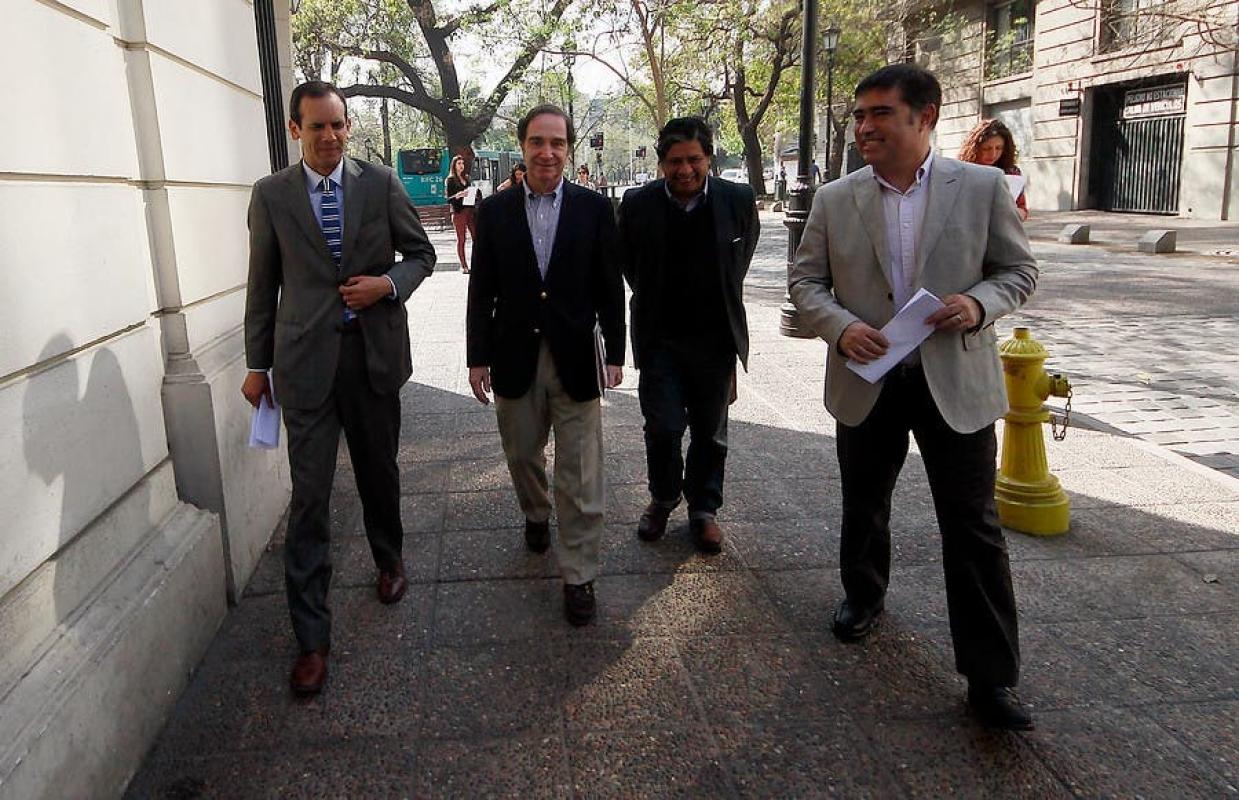 Hasta el Servicio Electoral llegó el presidente de la UDI, Hernán Larraín, acompañado de dirigentes de Chile Vamos. El objetivo: solicitar al presidente del consejo del organismo, Patricio Santamaría, que se revise la actual normativa.