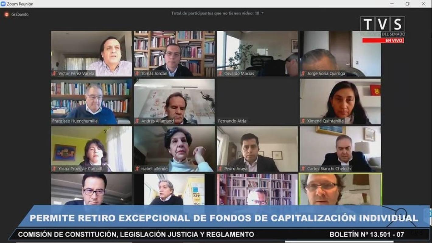 La Comisión de Constitución del Senado aprobó la idea de legislar este lunes el proyecto que permite, por única vez, el retiro de hasta un 10 por ciento de los fondos de pensiones por la pandemia, y el proyecto será votado en los próximos días en la sala.