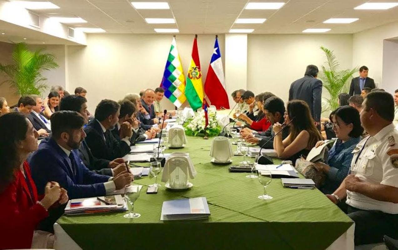 Las delegacionesLa delegación chilena es encabezada por la directora de Fronteras y Límites del Estado (Difrol), Ximena Fuentes, y está compuesta por otras 21 personas entre los que están el cónsul general de Chile en Bolivia, Manuel Hinojosa; y representantes de la Cancillería, del Ministerio del Interior, del Ministerio Público, Carabineros, PDI, Aduanas y Servicio Agrícola y Ganadero (SAG). Por su parte, la delegación boliviana es encabezada por la directora general de Relaciones Bilaterales, Dayana Ríos, está compuesta por otras 36 personas entre las que destacan Elmer Catarina Mamani, cónsul general de Bolivia en Arica; además de otros representantes de la Cancillería, del Ministerio de Gobierno, del Viceministerio de Defensa Social y Sustancias Controladas, de la policía, de la Dirección General de Migración, del Ministerio de Defensa, las Fuerzas Armadas, Aduana, Servicio Nacional de Sanidad Agropecuaria e Inocuidad Alimentaria (Senasag) y Agencia para el Desarrollo de las Macroregiones y Zonas Fronterizas (Ademaf). |
