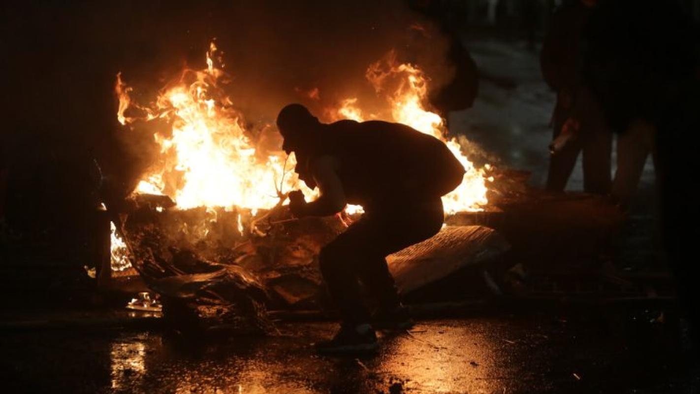 Encapuchado en las cercanías de Plaza Baquedano en el tercer aniversario del 18-O. (Agencia Uno)