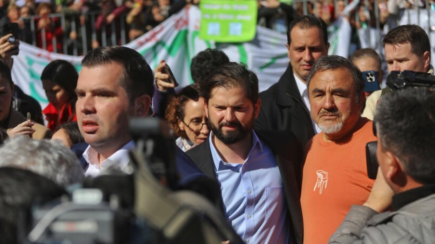 Agencia Uno - Presidente Boric y dirigente sindical