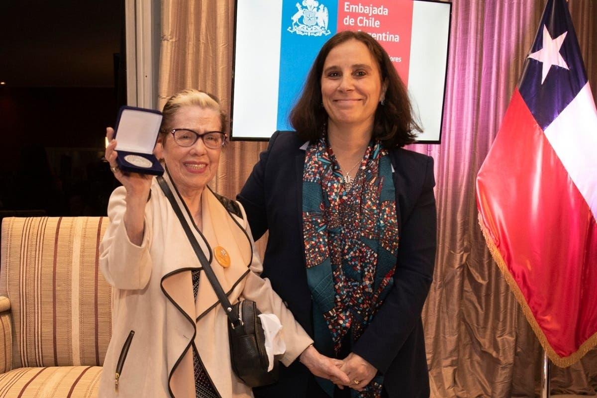Durante la jornada de este martes, la ministra de Relaciones Exteriores,Antonia Urrejola, le entregó un reconocimiento a Buscarita Roa, única integrante chilena de la Asociación Civil Abuelas de Plaza de Mayo, organización argentina que busca localizar a los bebés, niñas y niños que fueron apropiados por la dictua de ese país, en la embaja de Chile en Argentina.