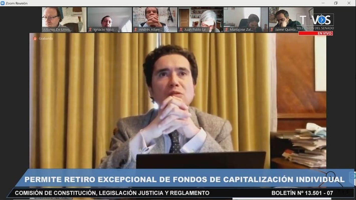 "Creo importante dejar de hablar del proyecto de retiro del 10 por ciento, y deberíamos empezar a hablar del retiro del 44 por ciento, porque que la verdad sea dicha, y las cifras están ahí: tenemos un 27 por ciento de los afiliados que van a retirar el 100 por ciento de su saldo, y el ciudadano o afiliado promedio va a retirar el 44 por ciento de su saldo", dijo en la Comisión de Constitución del Senado.