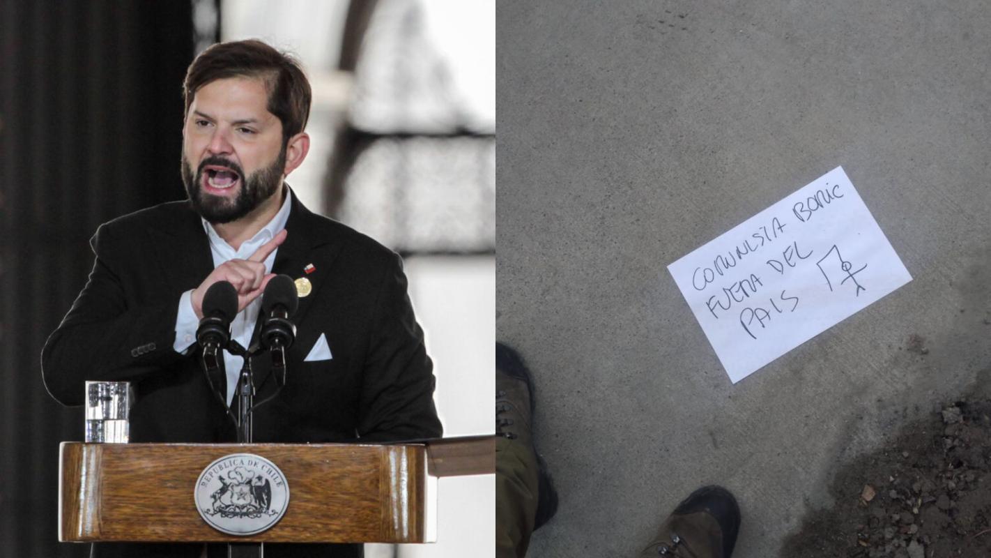 "Comunista Boric, fuera del país", decía uno de los panfletos.