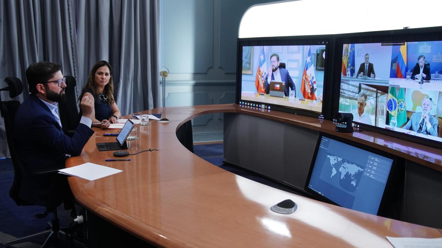 Presidente Boric se reúne con líderes de Brasil, España, Colombia y Uruguay para abordar desinformación en RRSS