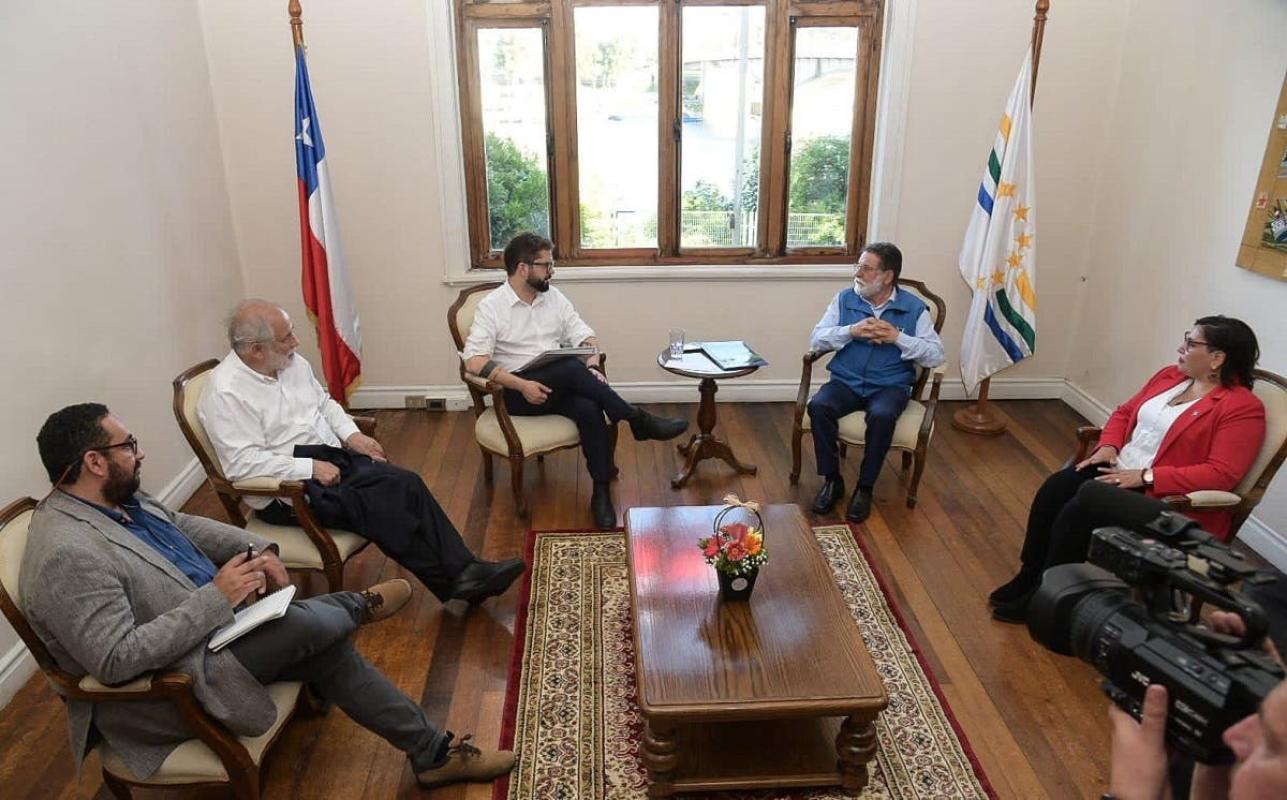 El presidente se trasladó hasta la sede del Gobierno Regional de Los Ríos ubicada en Valdivia, donde sostuvo una reunión con el gobernador regional, Luis Cuvertino, y con la delegada presidencial, Carla Peña.