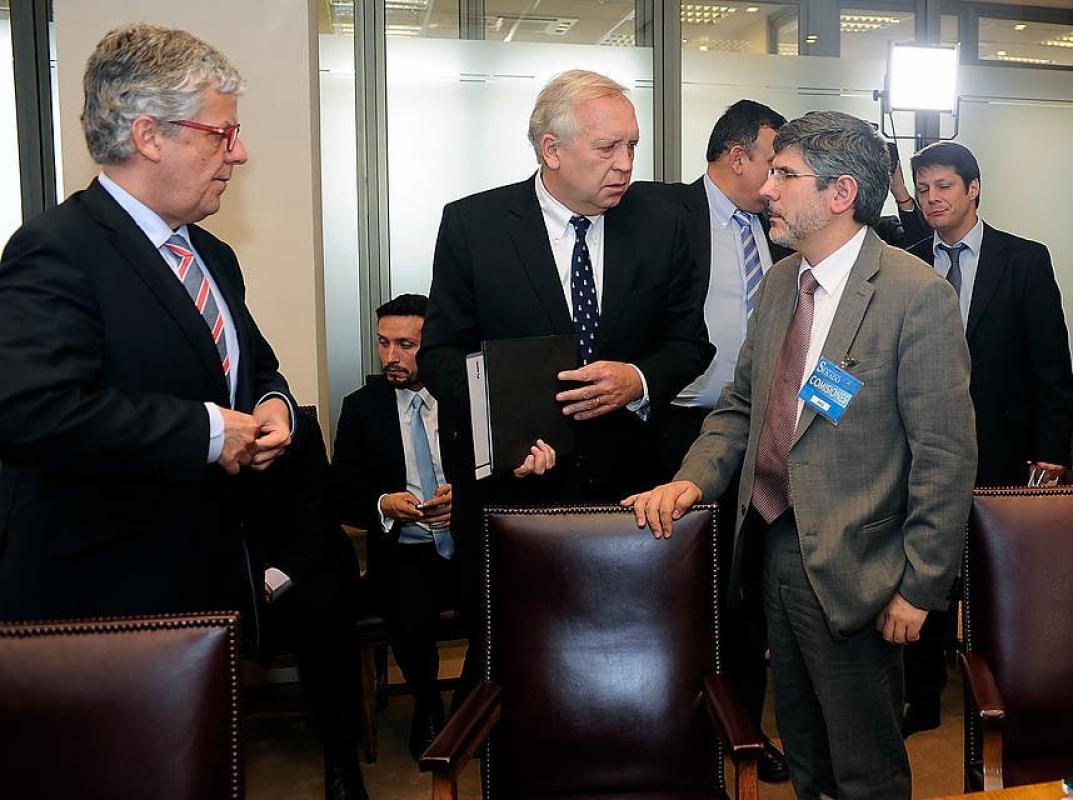 En medio de una incierta votación, donde hay senadores de la Nueva Mayoría que han dicho que rechazarán la propuesta, el titular de Interior reconoció que "he tenido diálogos con senadores también de la oposición, con varios, pero obviamente son diálogos que no estoy yo en condiciones de dar los resultados públicamente".