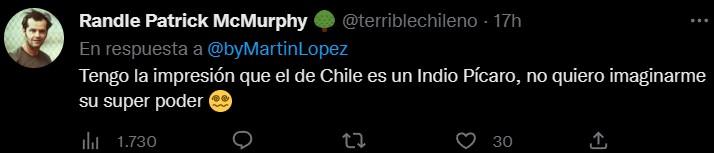 “El de Chile es como un Ivan Zamorano inca”, “Tengo la impresión que el de Chile es un Indio Pícaro, no quiero imaginarme su super poder”, “Las grecas que tiene en frente y costados son más bien incaicas”, comentaron algunos usuarios.