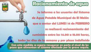 El racionamiento de agua en la comuna de Los Nogales, en específico en el sector del Melón, dará comienzo este 14 de febrero, entre las 14 y las 18 horas, manteniéndose todos los días de manera indefinida.