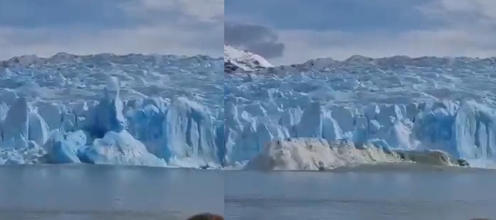 Los turistas se encontraban realizando un recorrido por los distintos glaciares de la zona y se detuvieron a observar el Grey, quien de un momento a otro se comenzó a desprender. Dejando una escena de la naturaleza impactante.