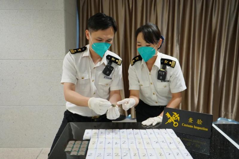 Los oficiales de aduanas notaron que caminaba de manera sospechosa. Después de una inspección minuciosa, los agentes descubrieron que llevaba un total de 306 CPUs adheridas a su cuerpo con película de plástico, como se puede ver en una imagen compartida por el medio chino.