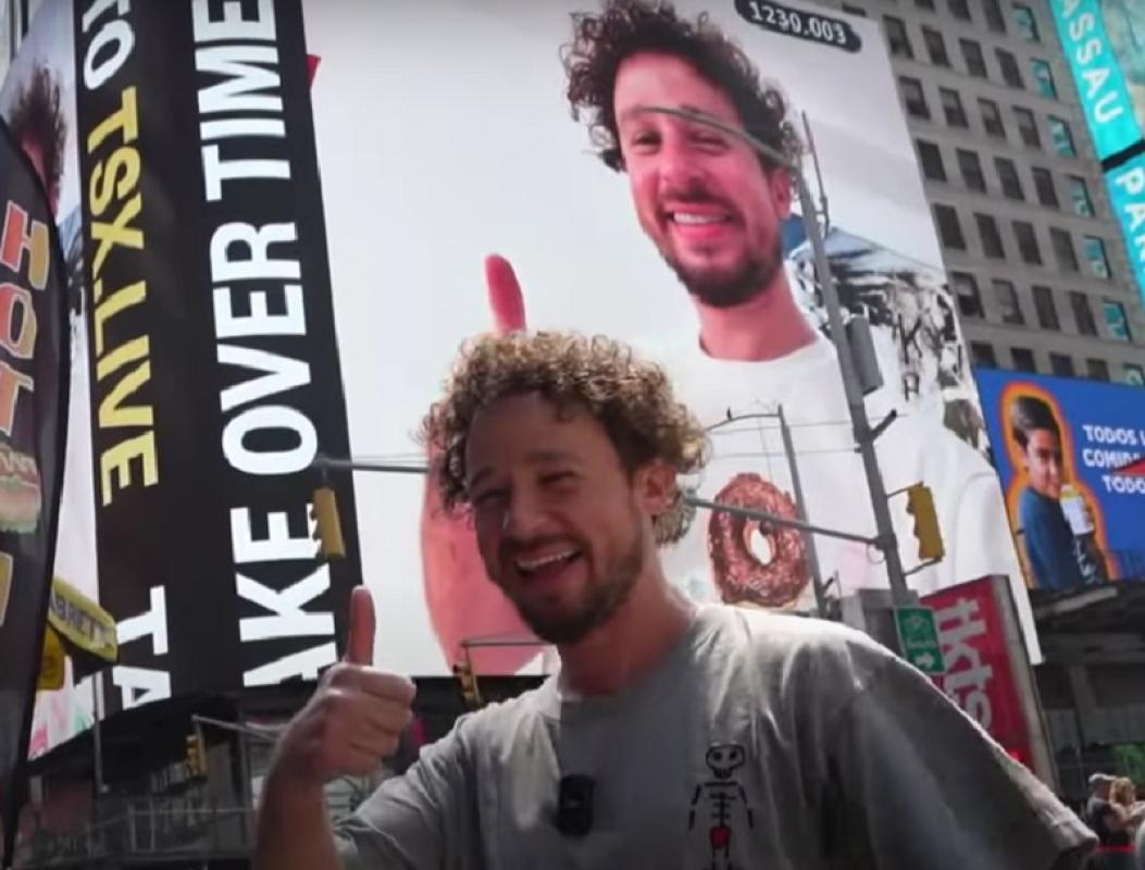 Fue en este contexto que el centroamericano compartió un video en YouTube en que mostró su rostro proyectado en la gigantesca pantalla del Times Square.