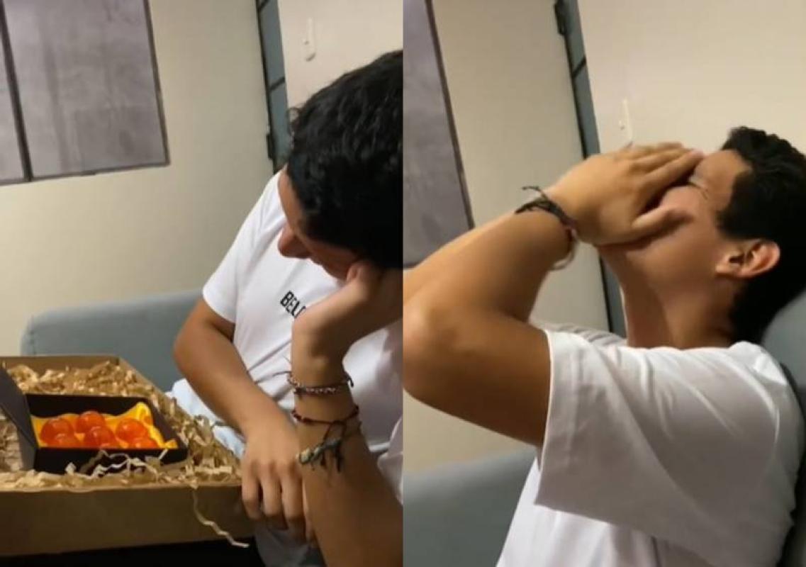 "El mejor regalo", decía la descripción del video donde se ve al joven abriendo el regalo que le entregó su novia.
