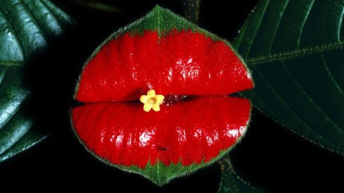 Flores únicas como la Psychotria Elata, que nos sorprende por su parecido a unos sensuales labios pintados de rojo.