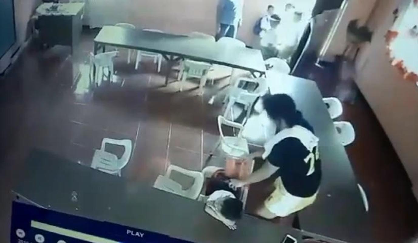 Mientras tanto, una profesora al verlo rendido, decidió ordenar sus cosas y de un salto, el niño despertó.