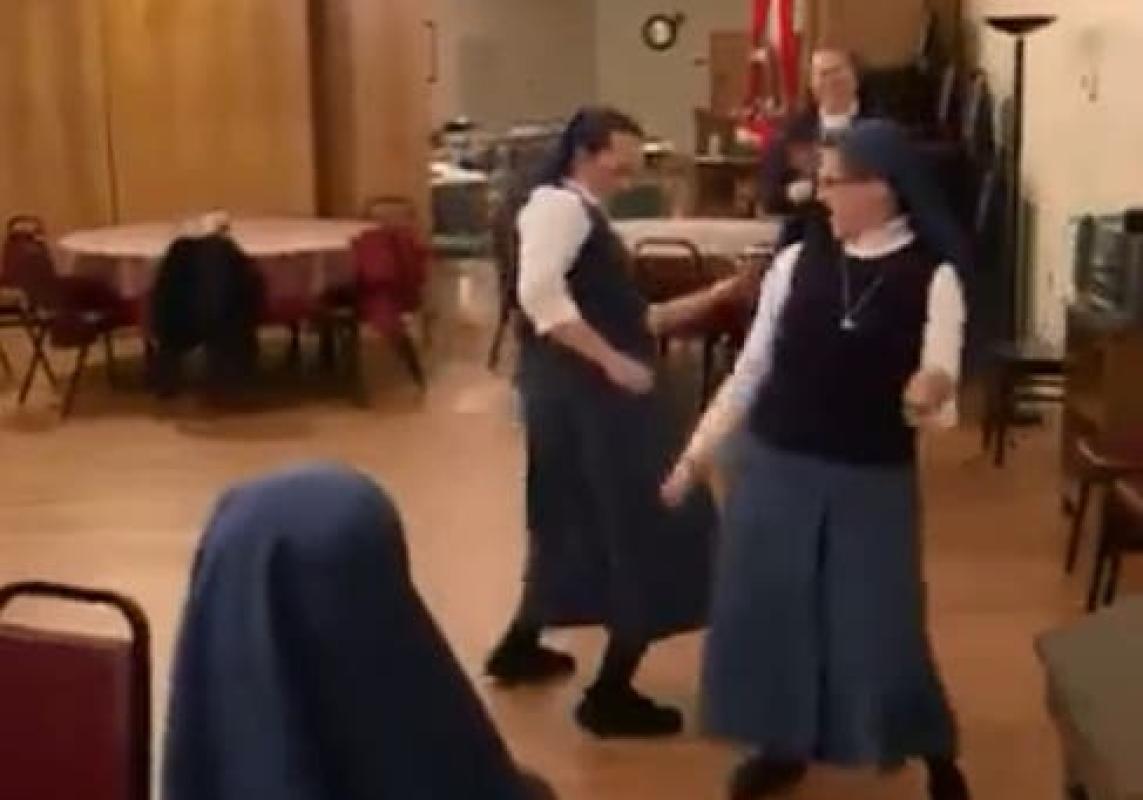 Dicen que "cantar es rezar dos veces" y este grupo de animadas religiosas eligió un tema para nada convencional para festejar una cena y disfrutar del momento con "We will rock you" del grupo Queen.