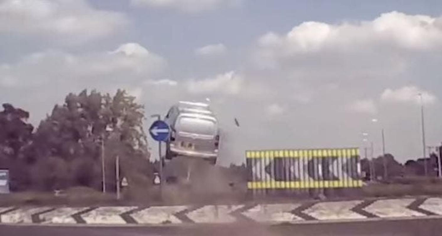 El pasado 1 de septiembre, en la localidad británica de Norfolk, se registró un espectacular accidente de tránsito, en donde una furgoneta salió volando al chocar contra el borde de una rotonda, al no alcanzar a doblar por la velocidad que llevaba.