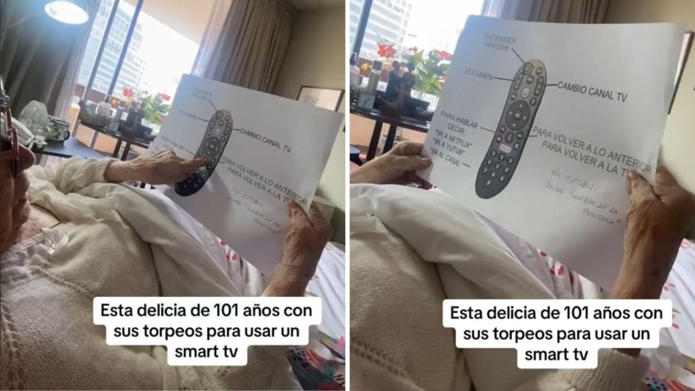 A través de TikTok se viralizó el video de una adulta mayor de 101 años que mostraba cómo son los "torpedos" que utiliza para aprender a usar un Smart TV que tiene en su pieza.