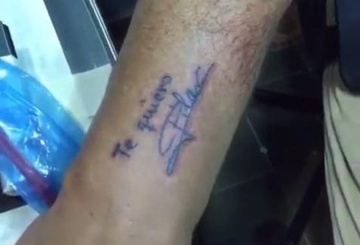 Al terminar el tatuaje se despidió de los emocionados tatuadores diciendo "ésto es lo que hace un hombre enamorado".