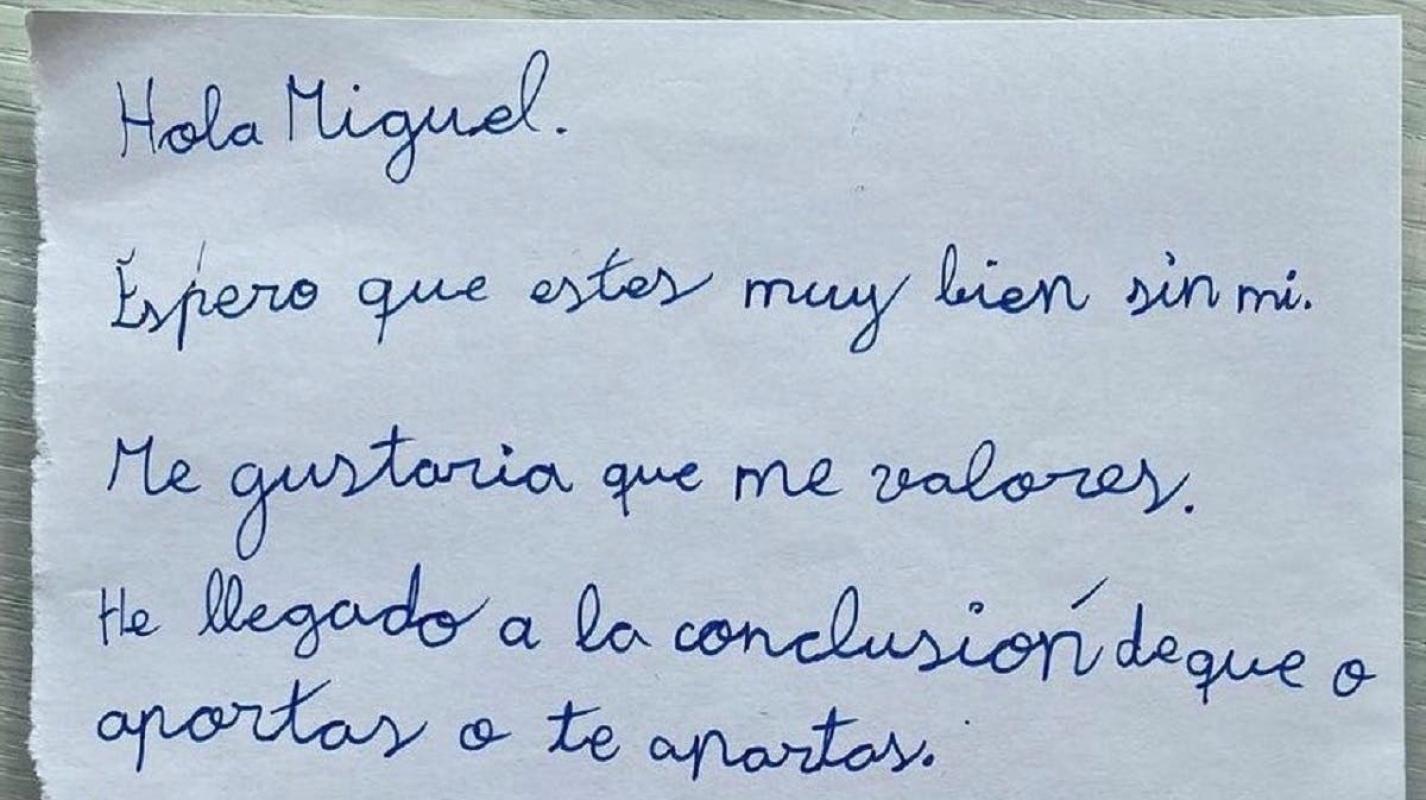 "Hola, Miguel. Espero que estés muy bien sin mi. Me gustaría que me valores", partió señalando.