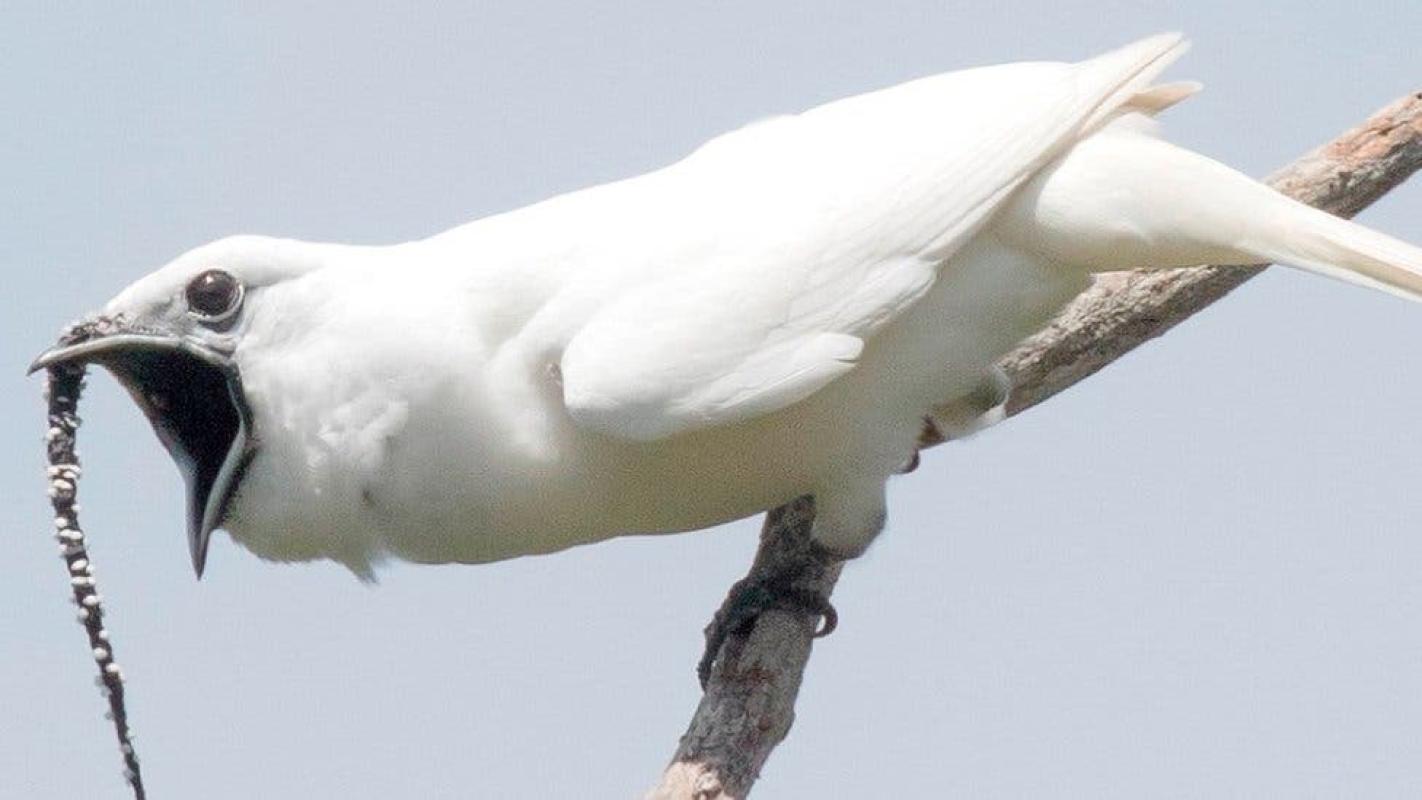 Los Procnias albus, unos pájaros de plumaje blanco del tamaño de una paloma, emiten un ruido más fuerte que el rugido de un taladro industrial o que los instrumentos musicales más bulliciosos.