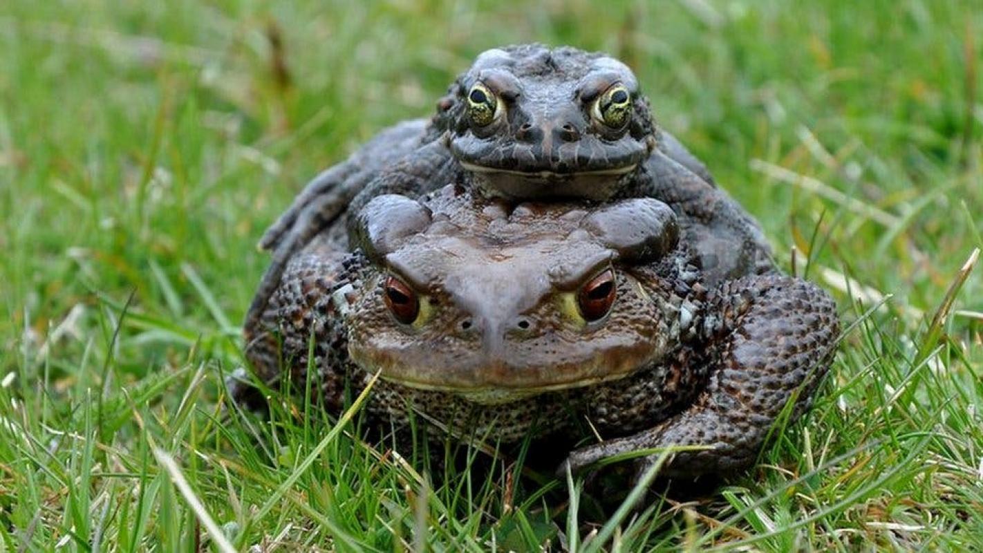 La hembra es un ejemplar de sapo europeo (Bufo bufo), una especie que puede encontrarse en casi toda Europa, mientras que el macho es un sapo balear (Bufotes balearicus) presente únicamente en el sur Italia, Córcega y las Islas Baleares.