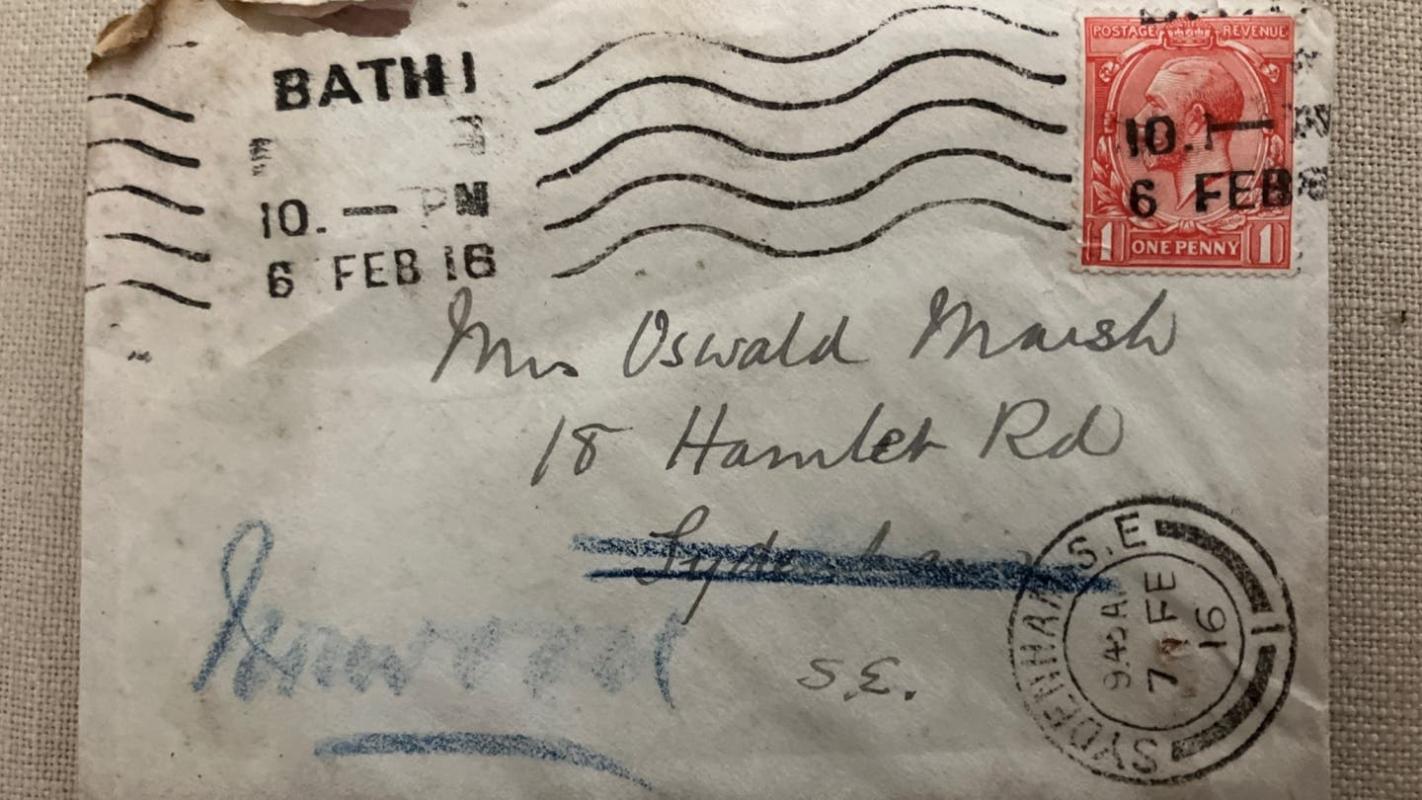 Fue en 2021 cuando Finlay Glen recibió en su casa en Hamlet Road, en Crystal Palace, el sobre con un matasellos de Bath y un estampilla con la imagen del rey Jorge V por el valor de 1d, como se denominaba a un penique hace un siglo.