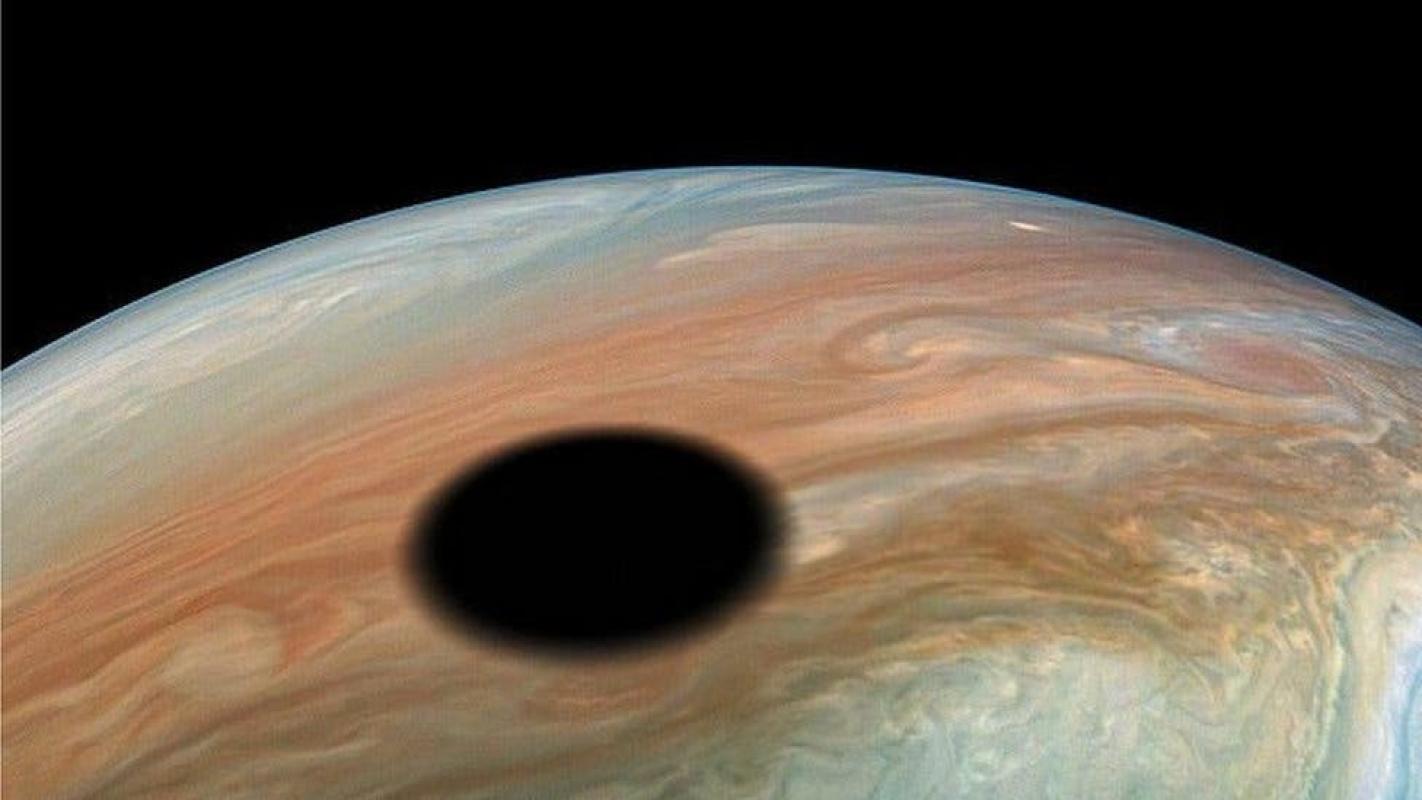 Las espectaculares imágenes de un eclipse solar visto sobre Júpiter