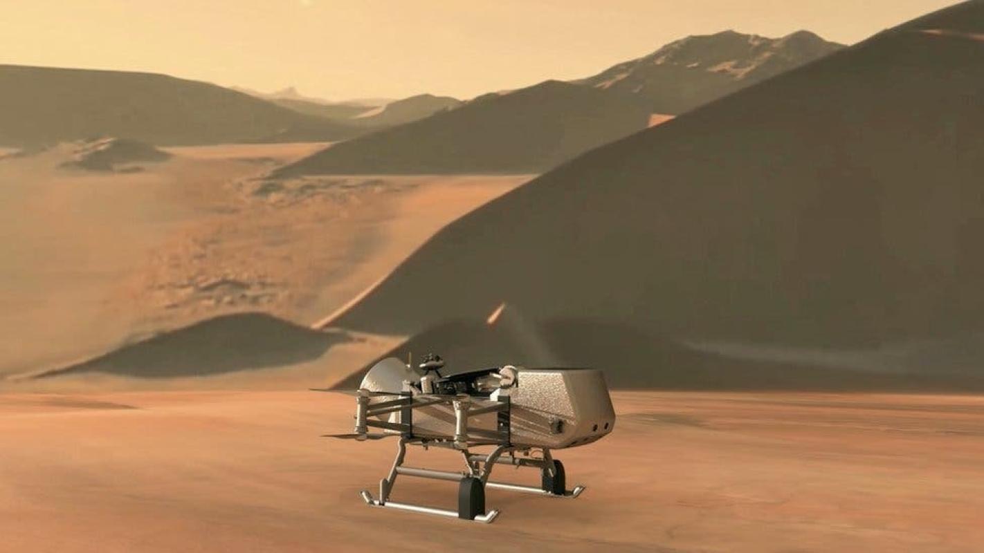 El protagonista de esta nueva expedición por el sistema solar será Dragonfly (libélula), una pequeña aeronave con rotores parecida a un dron.