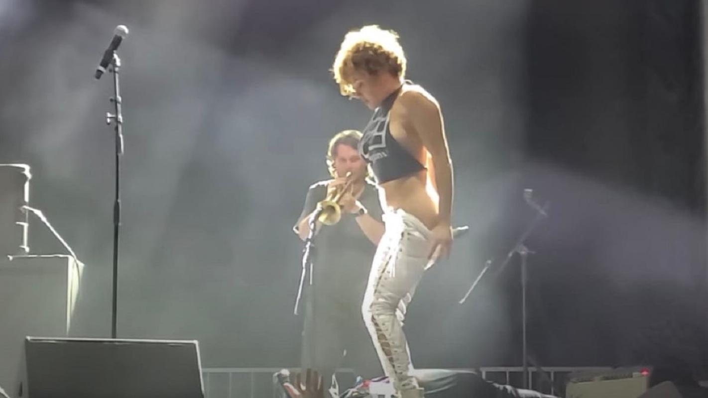 En las imágenes se ve como la vocalista de la banda Brass Against, Sophia Urista, mientras interpretaba una versión de "Wake Up" de Rage Against the Machine, invitó a un fan al escenario.