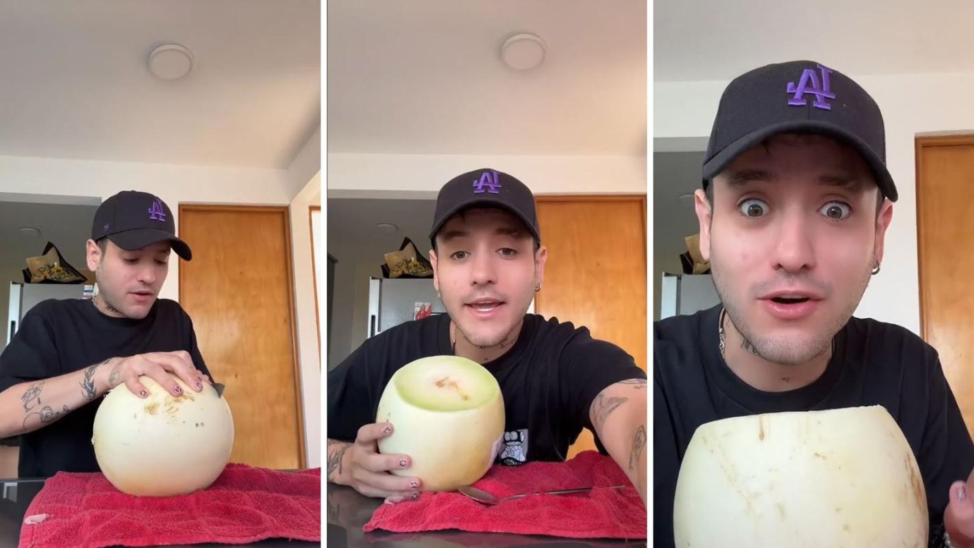 "Me estuvieron diciendo que probara el melón con vino chileno, que básicamente es un melón que abren, raspan y le meten vino. Se escucha delicioso y lo vamos a probar", comenzó diciendo el tiktoker.
