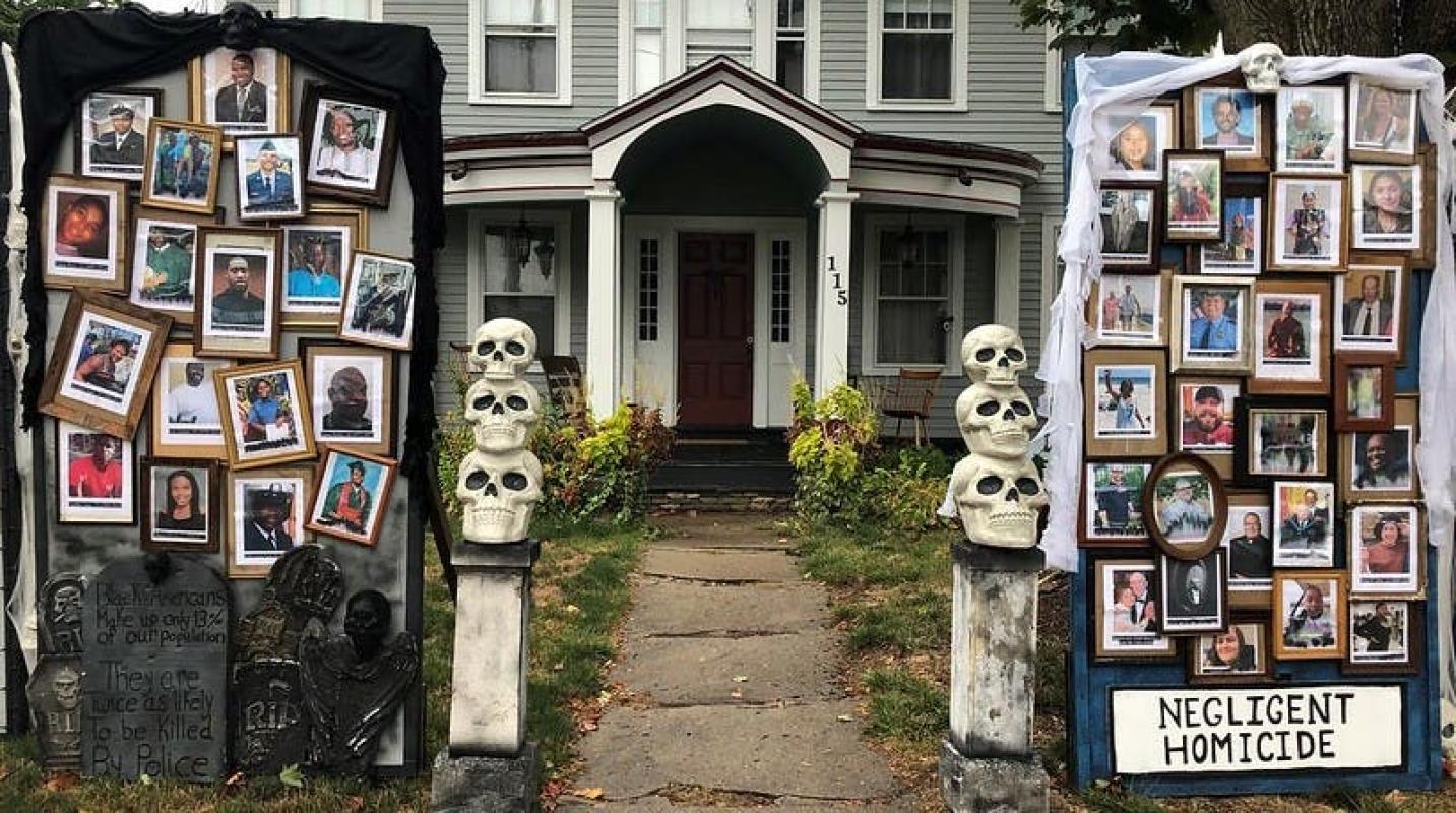 COVID-19 y Violencia policial: Decoran casa para Halloween en Reino Unido con los "horrores" del año