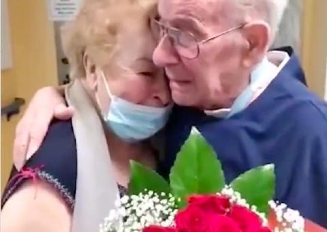 El emotivo reencuentro de una pareja de ancianos tras meses separados por la pandemia