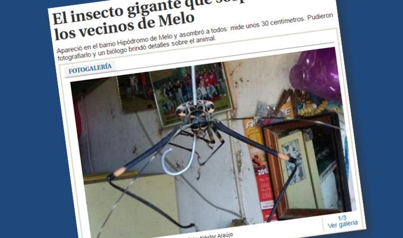 Asombrados quedaron los vecinos de un barrio de la ciudad uruguaya de Melo, a 400 kilómetros de Montevideo, después de encontrar un extraño insecto parecido a una mosca y de largas patas delanteras que lo hacían medir impresionantes 30 centímetros de extremidad a extremidad.
