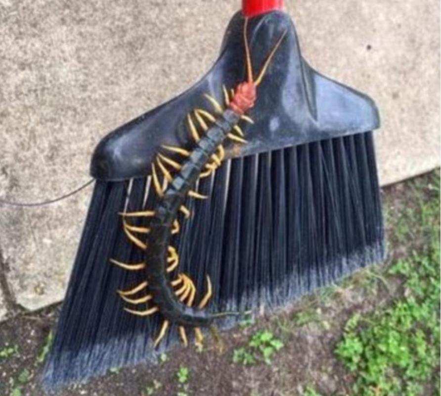 Un “ciempiés rojo” de Texas apareció en una escoba en el Parque Estatal Garner en Concan, al oeste de San Antonio en Texas.