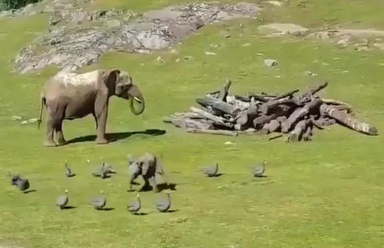 Un pequeño elefante juega con unas aves espantándolas. Sin embargo, una caída se roba el corazón de los usuarios de Twitter.