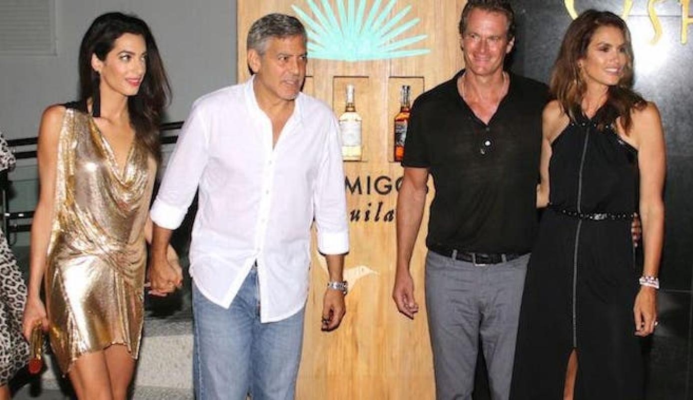 Claro, el ganador de dos Oscar estuvo siempre franqueado por su esposa, la abogada Amal Clooney y también de la mujer de su socio, la mismísima Cindy Crawford. Las parejas llegaron después en un jet desde Villa Oleandra hasta la mansión que Clooney tiene en el Lago de Como, Italia.