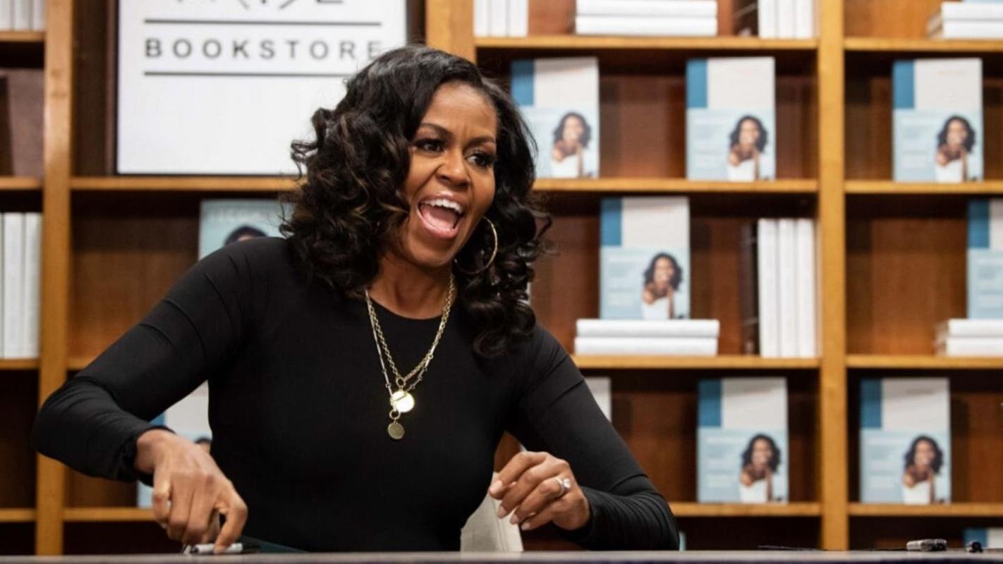 Michelle Obama compitió con un variopinto grupo de autores que incluyen a Michael Diamond y Adam Horovitz de los Beastie Boys por "Beastie Boys Book" y John Waters, el transgresor director y artista conocido por sus películas de culto, por "Mr. Know-It-All".