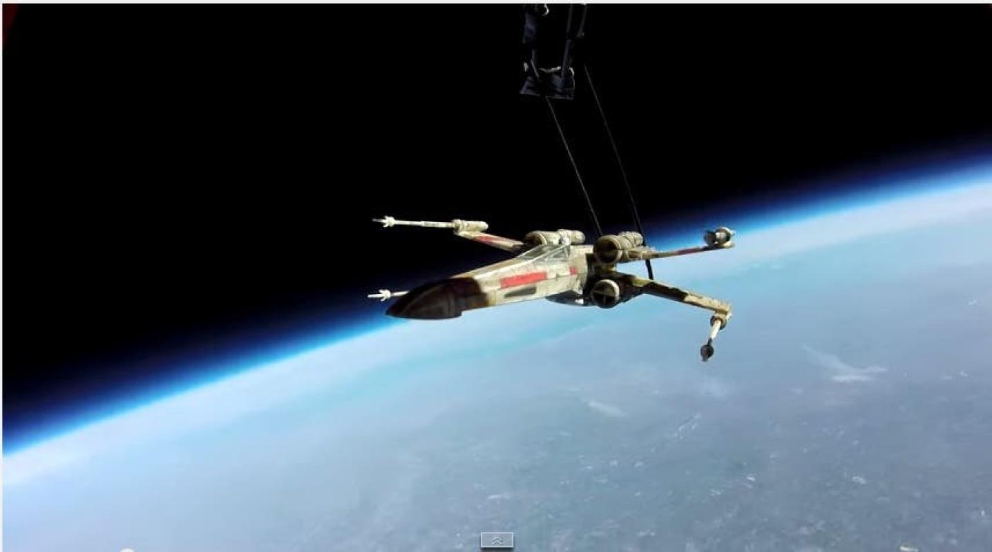 Fans de Star Wars lanzan nave "X-wing" a la estratosfera