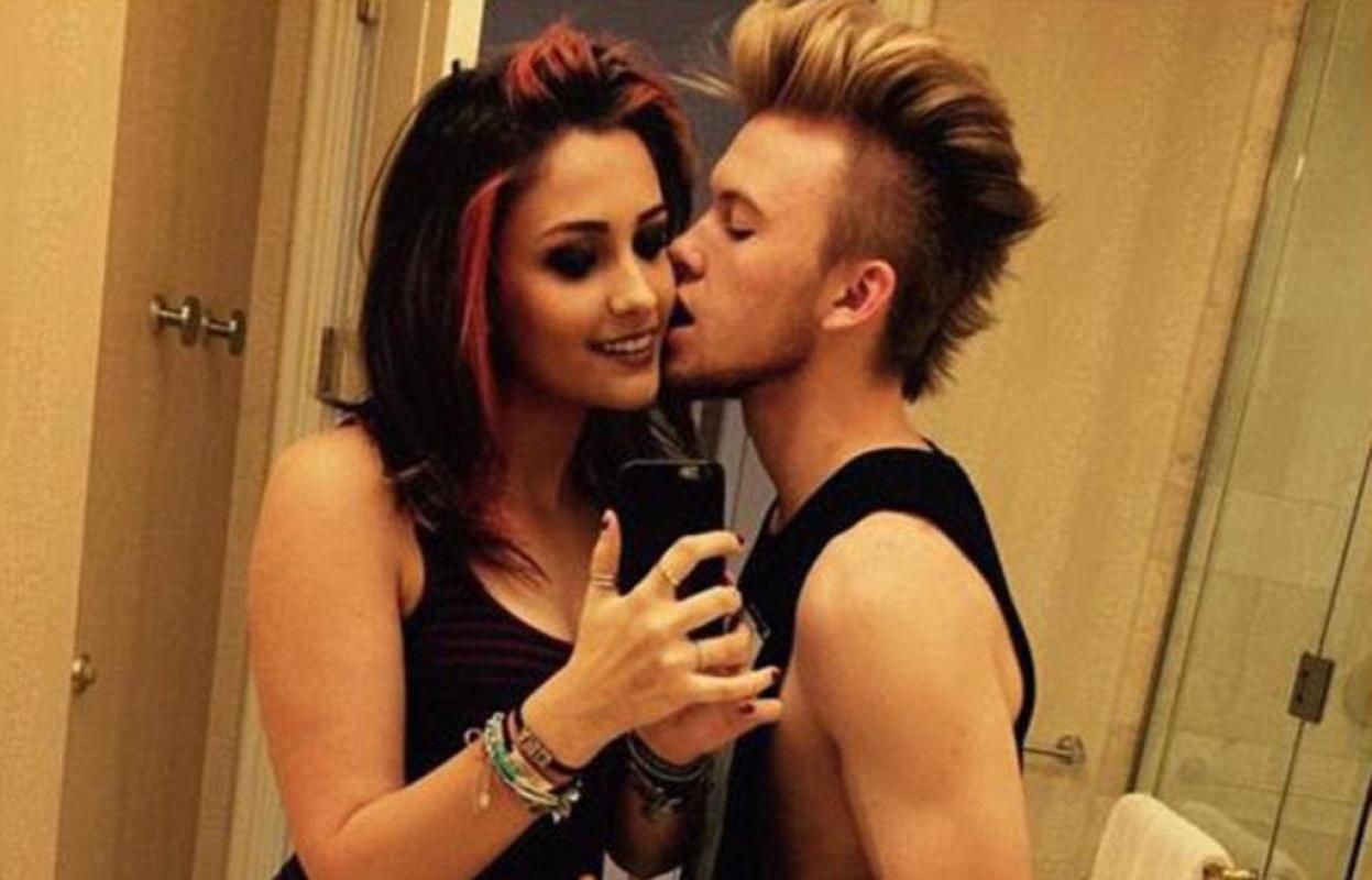 Es así como se puede apreciar que la adolescente de 17 años dejó de lado su cabello castaño claro y look angelical para pasar a uno oscuro con mechas rojas, similar el estilo punk. En la foto, aparece con su novio, el futbolista estadounidense Chester Castellaw, quien le besa la mejilla.