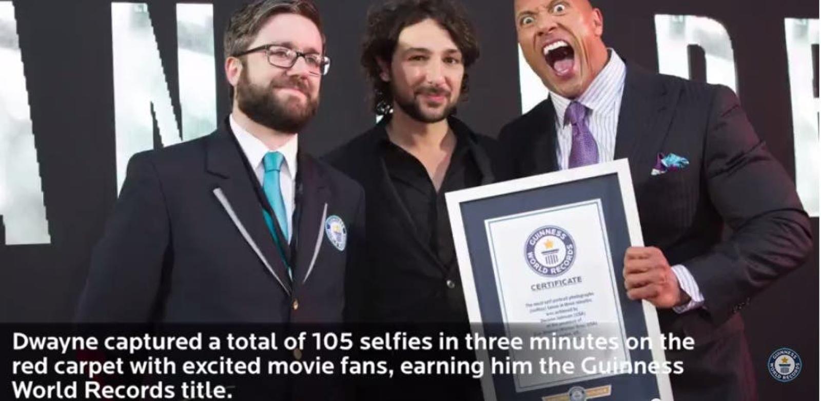 Dwayne Johnson, más conocido como La Roca, fue coronado como el Rey de la Selfie rápida al tomarse 105 fotos en menos de tres minutos.
