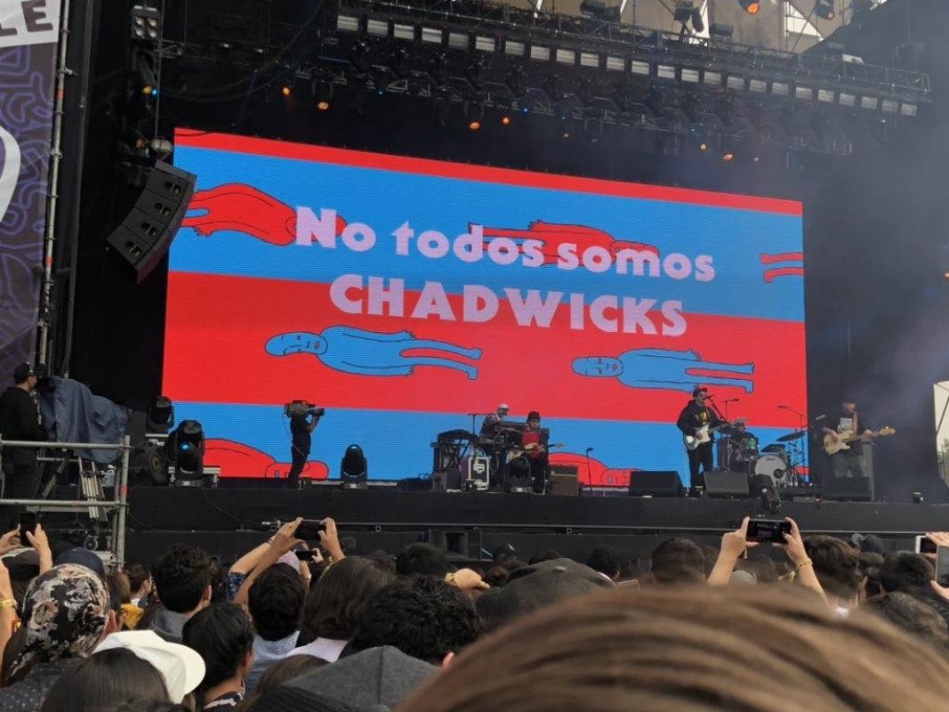 "No todos somos Chadwicks", "Justicia para Camilo Catrillanca" y "Mi cuerpo mi decisión" fueron algunas de las consignas políticas emitidas a través de la pantalla gigante del escenario en donde tocaron.